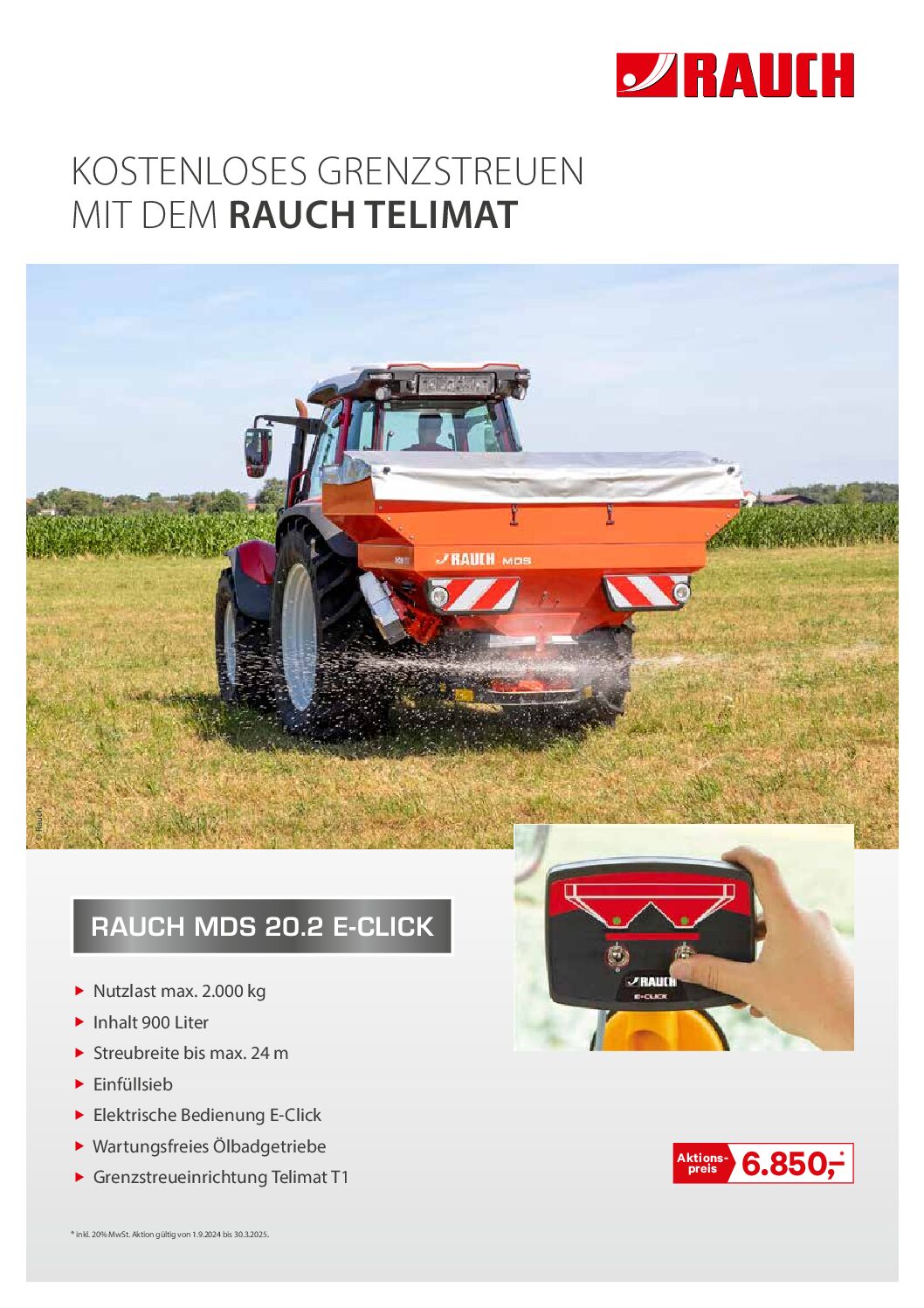 Holen Sie sich den beliebten Düngerstreuer Rauch MDS 20.2 E-Click jetzt mit kostenloser Grenzstreueinrichtung schon ab 6.850 Euro!*